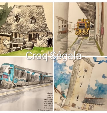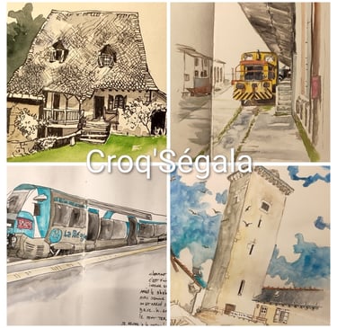 Nous marcherons parfois peu, parfois un peu plus, entre 2 et 5km par jour avec notre pique-nique, un petit siège et le matériel de dessin sur notre dos. Puis au détour d’un chemin nous ferons halte pour immortaliser un paysage, une ferme, un château, une vache, un dolmen, des baigneurs, un bunker, la forêt, une cascade, un vieux tracteur, un marché,... Tout peut-être prétexte à un arrêt dessin et votre carnet se remplira à l’aide de mes conseils sur le cadrage, la perspective, la mise en page, la lumière, les couleurs, etc.. Mes connaissances sur la région en tant que guide-conférencière vous apporteront matière à écrire et faire vivre vos dessins !